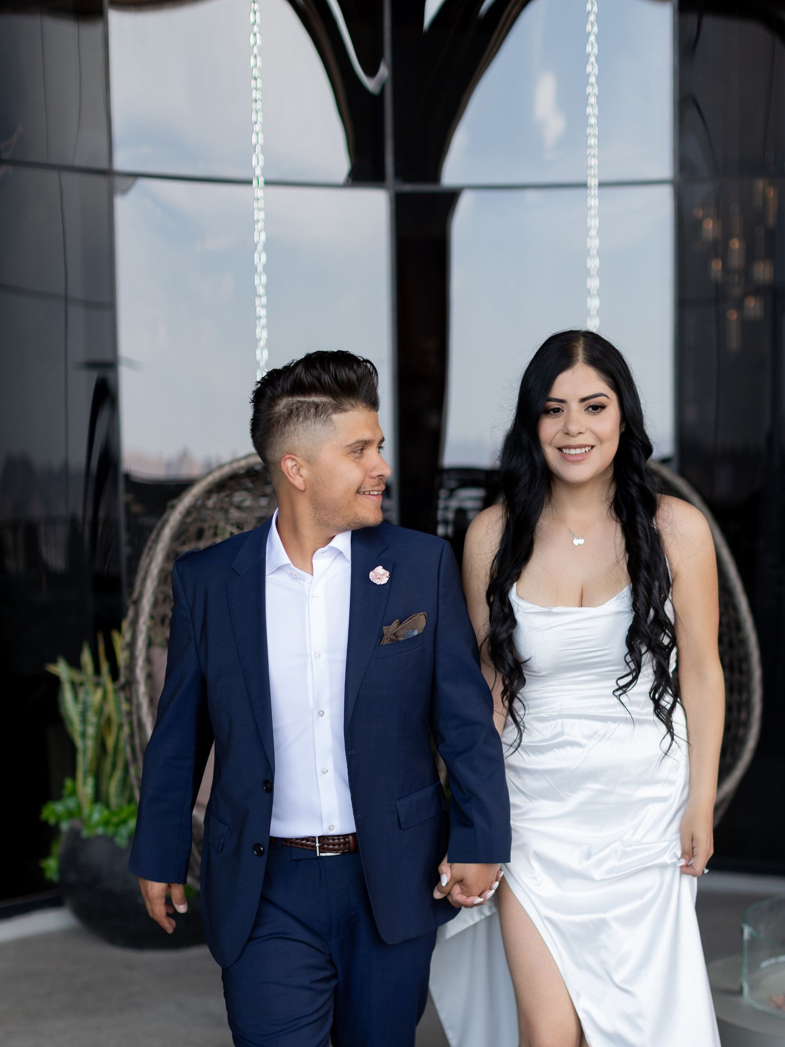 Linda, desde el primer momento supe que quería caminar contigo todos los días de mi vida. Hoy te agradezco por sostener mi mano y acompañarme en cada paso. Casarme con mi mejor amiga, con mi amor y con mi todo, es el regalo más grande que jamás soñé. Te elijo hoy y te elegiré siempre. Prometo amarte por el resto de mi vida.